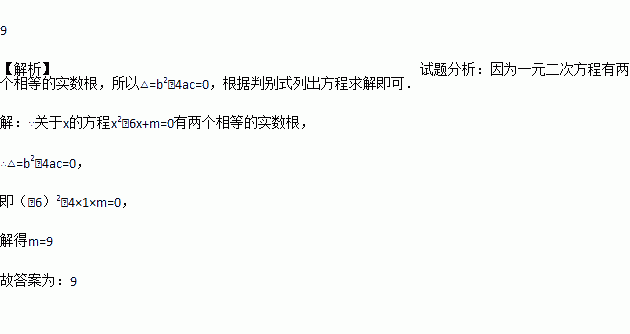 如果关于x的方程x2﹣6x+m=0有两个相等的实数根,那么m= .
