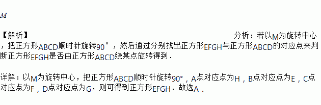 如图,若正方形EFGH由正方形ABCD绕图中某点顺时针旋转90°得到,则旋转中心应该是________点.