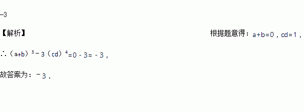 查看答案a,b互为相反数,c,d互为倒数,则(a+b)3﹣3(cd)4=_____.