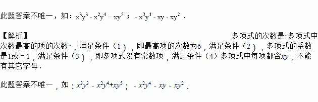 试至少写两个只含有字母x、y的多项式,且满足下列条件: