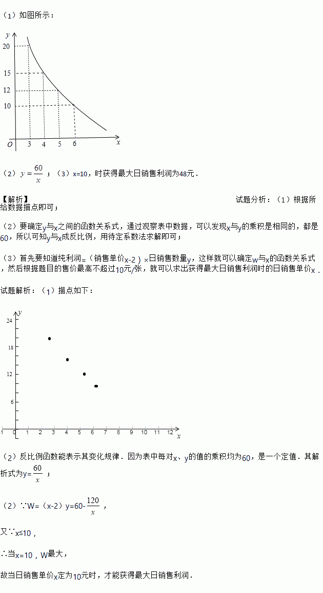 (3)设经营此贺卡的销售利润为W元,试求出W与x之间的函数关系式,若物价局规定此贺卡的售价最高不能超过10元/个,请你求出当日销售单价x定为多少元时,才能获得最大日销售利润?