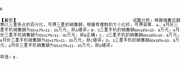 D. 3月份与4月份的三星手机销售额无法比较,只能比较该店销售总额