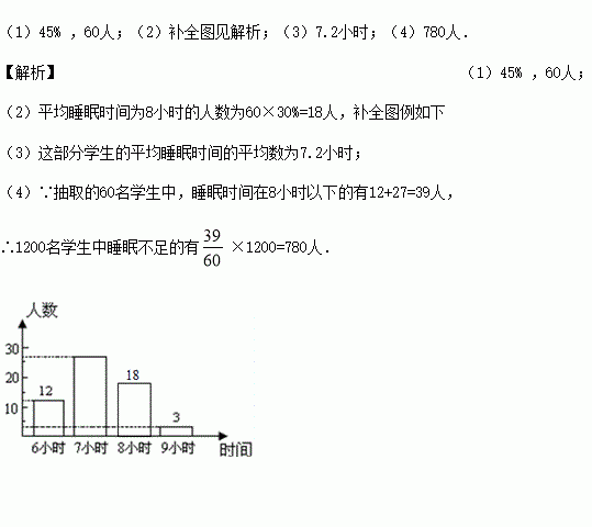 (4)如果该校共有学生1200名,请你估计睡眠不足(少于8小时)的学生数.