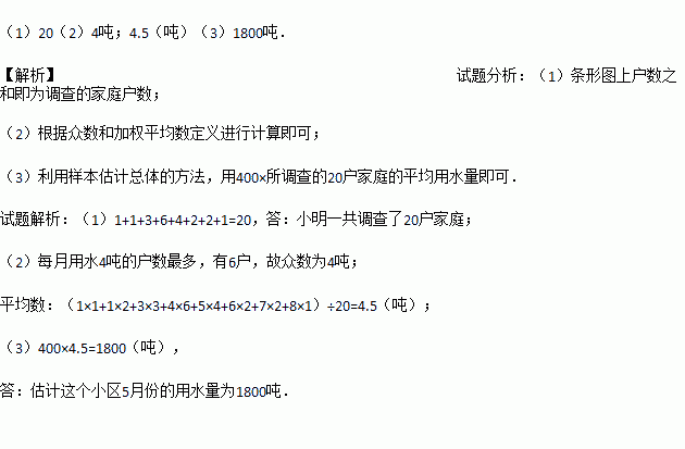 (1)小明一共调查了_____户家庭;所调查家庭5 月份用水量的众数是____;