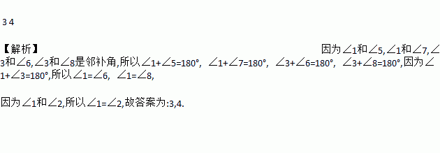 如图,若∠1+∠3=180°,则图中与∠1相等的角有__________个,与∠1互补的角有__________个.