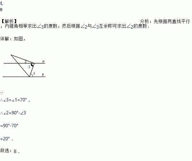 如图,已知平行线a,b,一个直角三角板的直角顶点在直线a上,另一个顶点在直线b上,若,则的大小为( )
