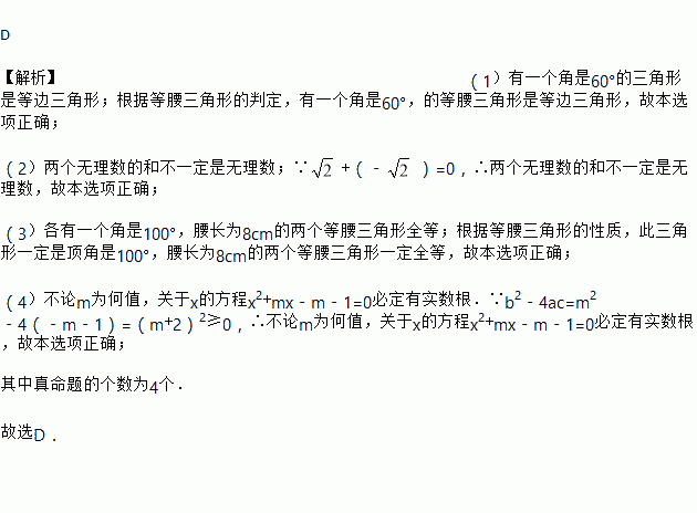 (4)不论m为何值,关于x的方程x2+mx﹣m﹣1=0必定有实数根.其中真命题的个数为( )
