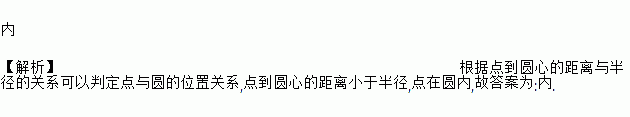 ⊙的半径为,点到圆心的距离为,则点在⊙__________.(填“内”、“上”或“外”)