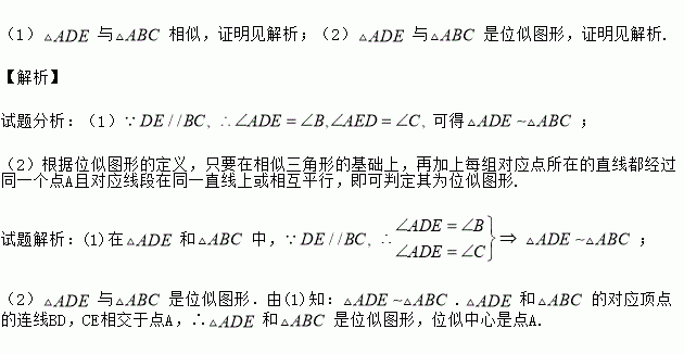 (2)它们是位似图形吗?如果是,请指出位似中心。