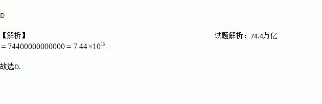 2016年我国国内生产总值达到74.4万亿元,比上年增长6.7%.将74.4万亿用科学记数法表示为( )