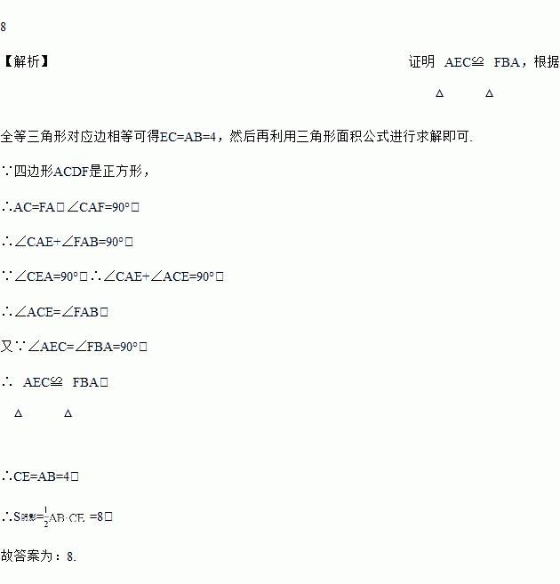 如图,四边形ACDF是正方形,和都是直角,且点三点共线,,则阴影部分的面积是__________.