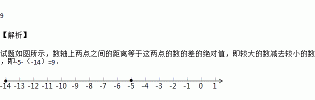数轴上表示数-5和表示-14的两点之间的距离是 .