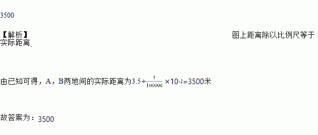 在一幅比例尺是1∶100000的地图上,测得A,B两地间的距离为3.5厘米,那么A,B两地间的实际距离为________米.