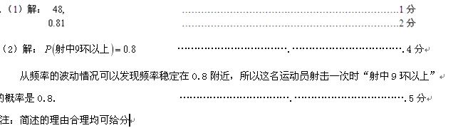 £¨2£©¸ù¾ÝƵÂʵÄÎȶ¨ÐÔ£¬¹À¼ÆÕâÃûÔ˶¯Ô±Éä»÷Ò»´Îʱ¡°ÉäÖÐ9»·ÒÔÉÏ¡±µÄ¸ÅÂÊ£¨¾«È·µ½0.1£©£¬²¢¼òÊöÀíÓÉ.