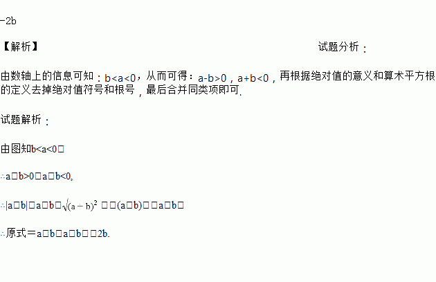 已知表示实数a,b的两点在数轴上的位置如图所示,化简:|a-b|+.