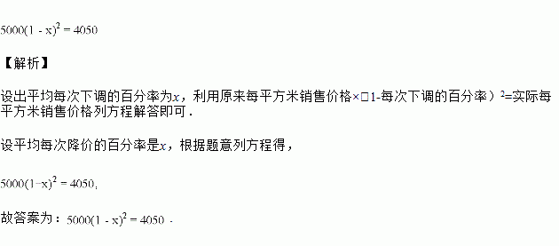某装饰材料原来准备以每平方米元的销售.为了加快资金周转,商场经过两次下调后,决定以每平方米元销售.设平均每次下调的百分率,则可列方程为________.