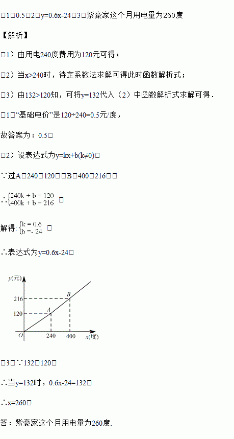 (3)若紫豪家六月份缴纳电费132元,求紫豪家这个月用电量为多少度?