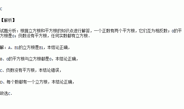 A.﹣1的立方根是﹣1 B.0的平方根与立方根相等