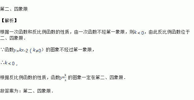 如果函数y=kx﹣2(k≠0)的图象不经过第一象限,那么函数的图象一定在_____.