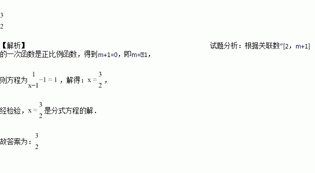 新定义:[a,b]为一次函数y=ax+b(a≠0,a,b为实数的“关联数”.若“关联数”为的一次函数是正比例函数,则关于的方程的解为____.