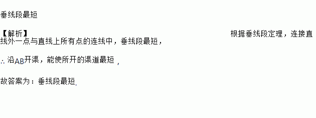 如图,计划把河水引到水池A中,先引AB⊥CD,垂足为B,然后 沿AB开渠,能使所开的渠道最短, 这样设计的依据是_______________.