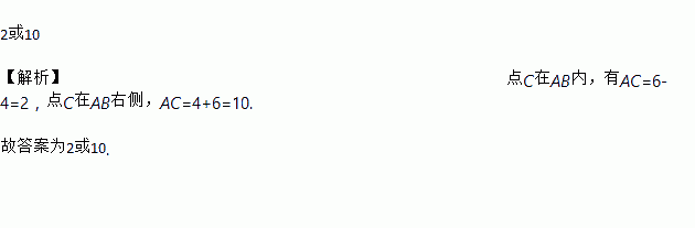 线段AB=6,点C在直线AB上,BC=4,则AC的长度为________.