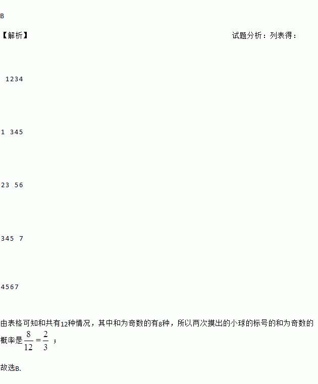 在一个口袋中有4个完全相同的小球,把它们分别标号为1,2,3,4,随机地摸出一个小球不放回,再随机地摸出一个小球,则两次摸出的小球的标号的和为奇数的概率是