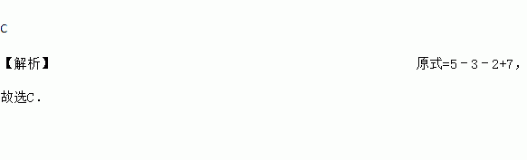 A. ﹣5+3+7﹣2 B. 5﹣3﹣2﹣7 C. 5﹣3﹣2+7 D. 5+3﹣2﹣7