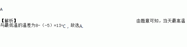 济南市某天的气温:-5~8℃,则当天最高与最低的温差为( )