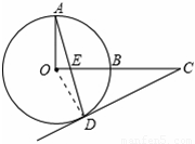 已知OA、OB是⊙O的两条半径,且OA⊥BC,C为OB延长线上任意一点,过点C作CD切⊙O于点D,连接AD,交OC过于点E。