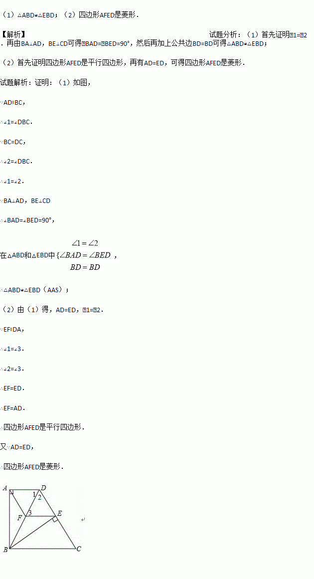 (2)过点E作EF∥DA,交BD于点F,连接AF.求证:四边形AFED是菱形.