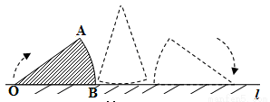 如图,在扇形AOB中,OA=15,∠AOB=36°,OB在桌面内的直线l上.现将此扇形沿l按顺时针方向旋转(旋转过程无滑动),当OA落在l上时,停止旋转.则点O所经过的路线长为 .(结果保留π)