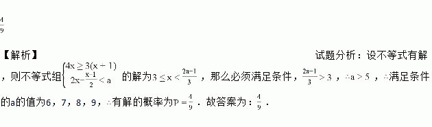 有9张卡片,分别写有这九个数字,将它们背面朝上洗匀后,任意抽出一张,记卡片上的数字为a,则关于x的不等式组有解的概率为________.