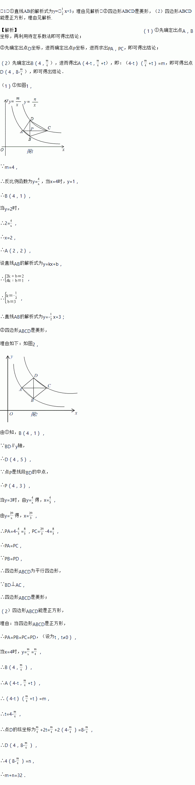 (2)四边形ABCD能否成为正方形?若能,求此时m,n之间的数量关系;若不能,试说明理由.