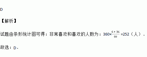 某学校教研组对八年级360名学生就“分组合作学习”方式的支持程度进行了调查,随机抽取了若干名学生进行调查,并制作统计图如图所示,据此统计图估计该校八年级学生对“分组合作学习”方式非常喜欢和喜欢的人数约为( )