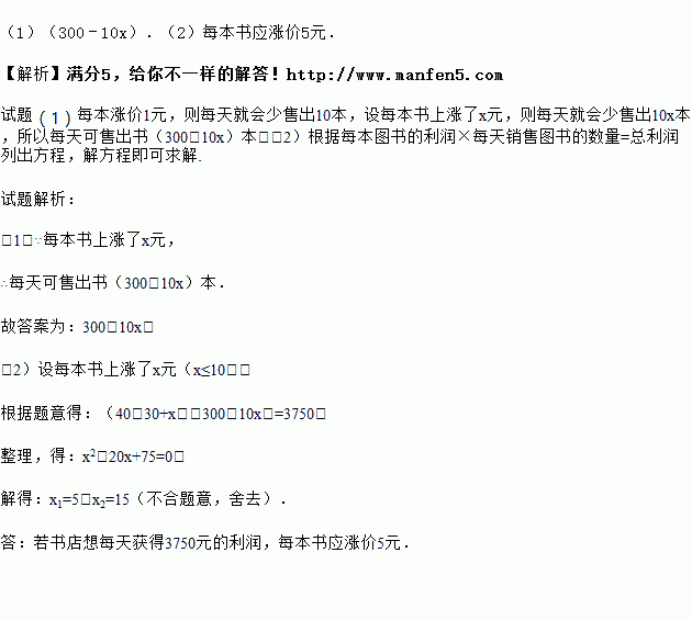 (2)若书店想通过售出这批图书每天获得3750元的利润,应涨价多少元?