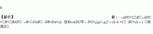 如图,在△ABC中,∠C=90°,AC=2,点D在BC上,∠ADC=2∠B,AD=,则BC的长为( )