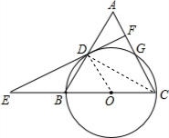 如图,已知等腰△ABC,AC=BC=10,AB=12,以BC为直径作⊙O交AB点D,交AC于点G,DF⊥AC,垂足为F,交CB的延长线于点E.