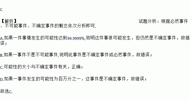 D. 如果一事件发生的可能性为百万分之一,那么这事件是不可能事件.