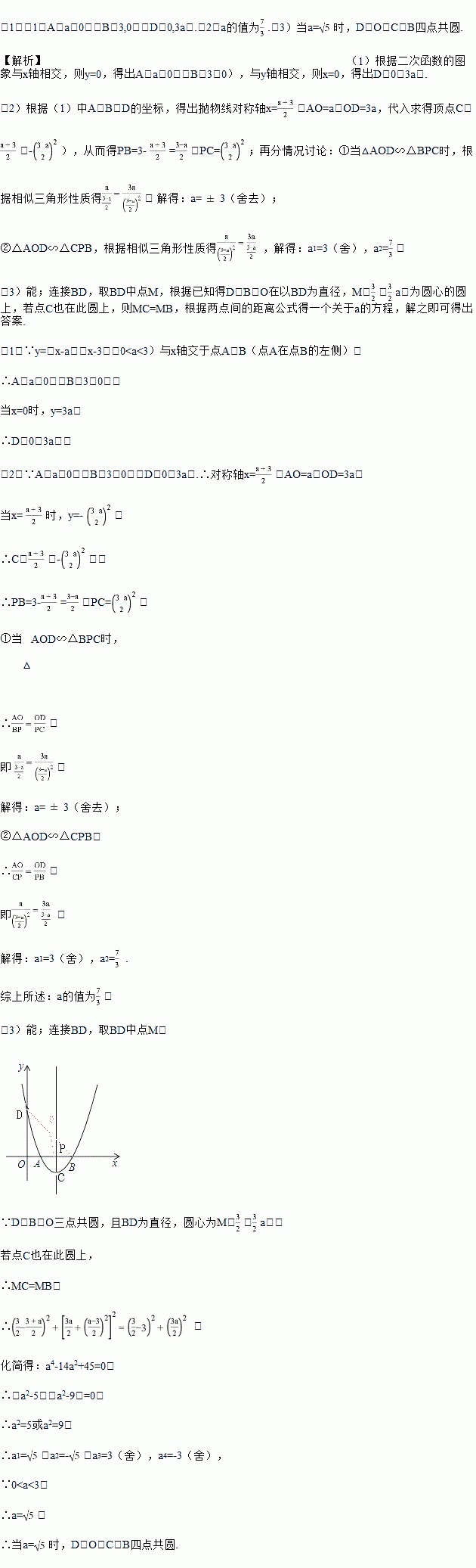 (3)点D、O、C、B能否在同一个圆上,若能,求出a的值,若不能,请说明理由.