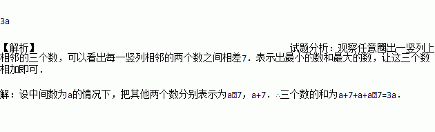 (2002•南昌)在右边的日历中,任意圈出一竖列上相邻的三个数,设中间一个数为a,则这三个数之和为: (用含a的代数式表示)