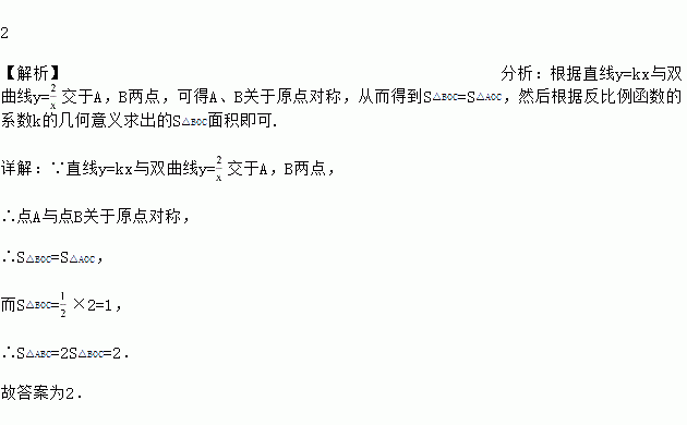 如图,直线y=kx与双曲线y=交于A,B两点,BC⊥y轴于点C,则△ABC的面积为_____.
