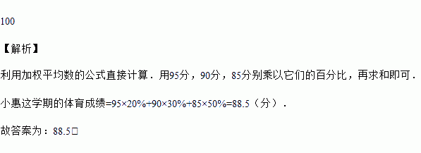 实验中学规定学生学期的数学成绩满分为120分,其中平时成绩占20%,期中考试成绩占30%,期末考试成绩占50%,王玲的三项成绩依次是100分,90分,106分,那么王玲这学期的数学成绩为_____分.