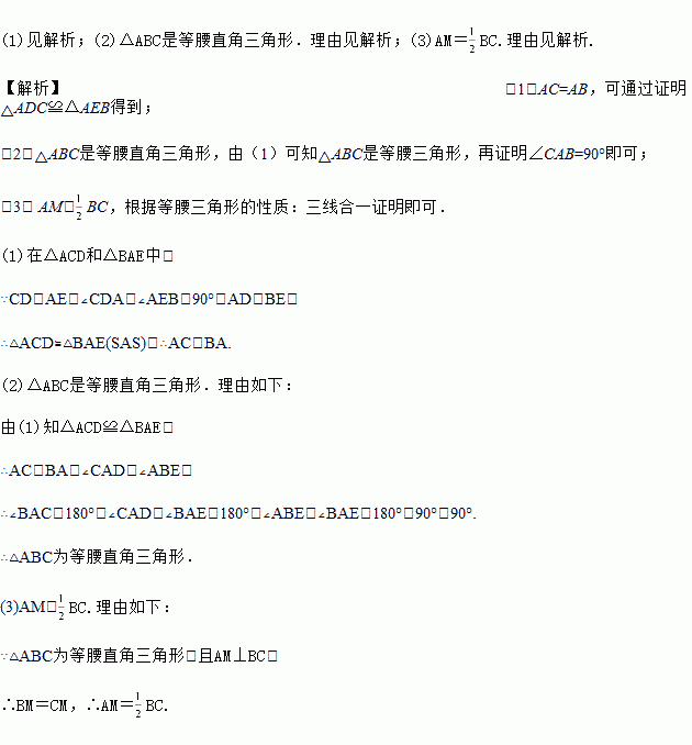 (3)如果AM⊥BC,那么AM=BC吗?请说明理由.