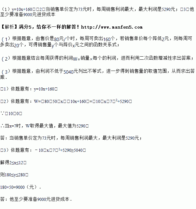 (3)若商户计划下周利润不低于5040元的情况下,他至少要准备多少元进货成本?