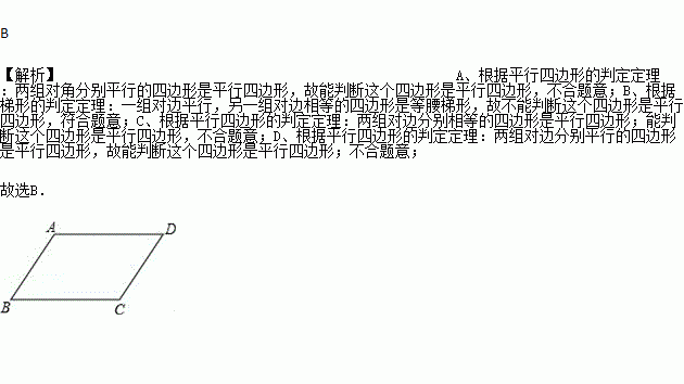 下列条件不能用来判定四边形ABCD是平行四边形的是( )