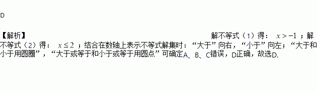 关于的不等式组,其解集在数轴上表示正确的是( ).