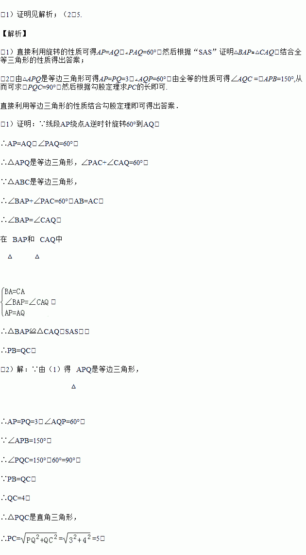 已知,点P是等边三角形△ABC中一点,线段AP绕点A逆时针旋转60°到AQ,连接PQ、QC.