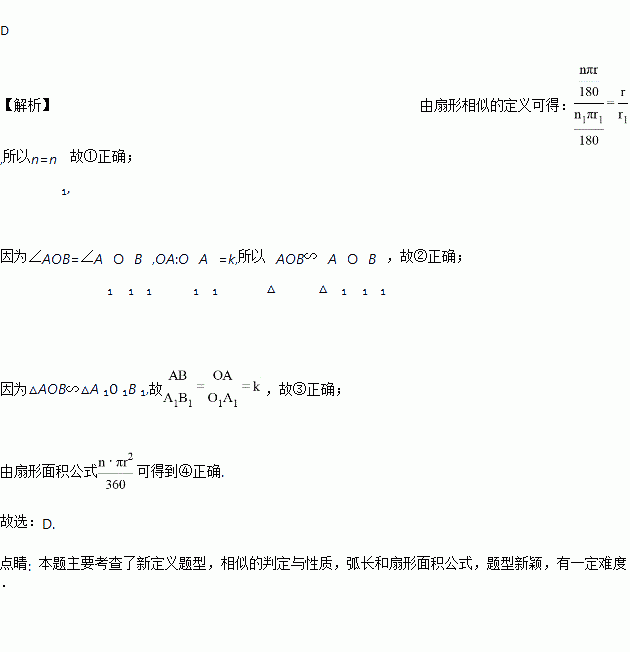 =k;④扇形AOB与扇形A1O1B1的面积之比为k2.成立的个数为( )