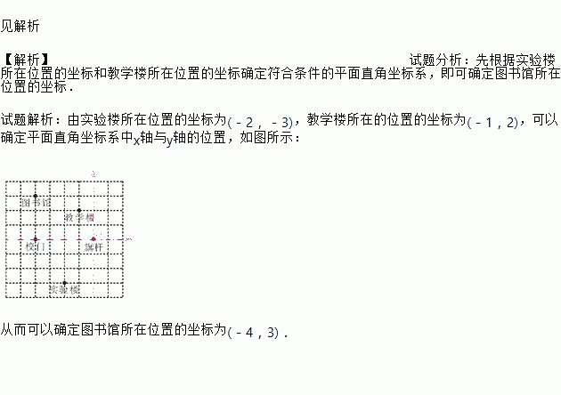某学校的平面示意图如图所示,实验楼所在位置的坐标为(-2,-3),教学楼所在位置的坐标为(-1,2),请确定图书馆所在位置的坐标.